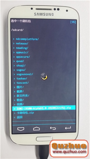 4.完成後recovery回到默認界面,再按照圖中步驟選擇鎖下載的iuni os刷機包。