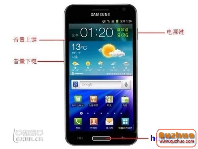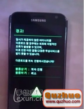 手機關機後,同時按住音量向下鍵+HOME鍵+POWER ON,出現第一界面後,立馬按下音量向上鍵進入