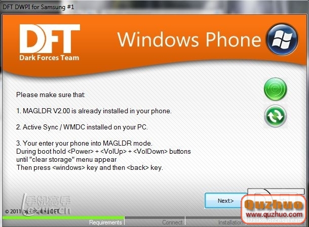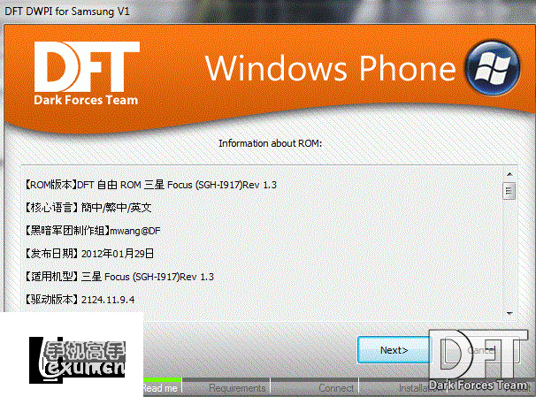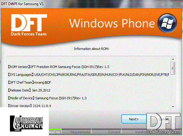 這個發佈是屬三星專用的 MAGLDR 2.00. 刷完MAGLDR, 你可以使用 DWPI (DFT Windows Phone Installer) 來刷自 ROM. 要求你需要支持三星官方ROM的安裝到您的設備上進行安裝。如果MAGLDR版本不同,安裝可能會失敗 質保事宜請注意,您的保修服務將會失效。請酌情使用。如果您要將您的設備送到維修中心,請將您的手機刷回官方 ! 免責聲明該軟件免費使用,但是您需自行承擔使用該軟件所帶來的風險。我們不會對您在使用該軟件時給設備帶來的沖突、故障或者解鎖過程中對設備造成的損壞負責。如果您同意使用該軟件,則表示您同意整個沒有擔保和提示的過程。經測試,此軟件能在不同的設備正常工作,但我們不保證在您的機器不會有問題出現。程序嚴禁用於商業用途。