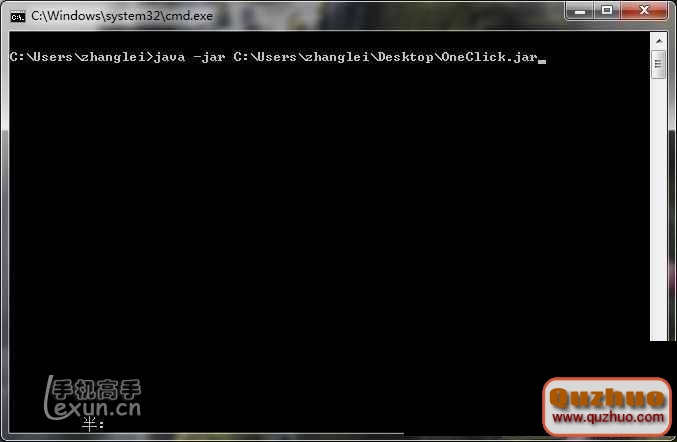 4、輸入 java -jar *****\\OneClick.jar(*代表你的OneClick.jar文件存放的路徑地址)