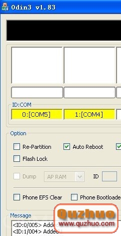 6.連接www.shuleba.com電腦,odin顯示這樣。說明驅動正常,能夠識別到手機。