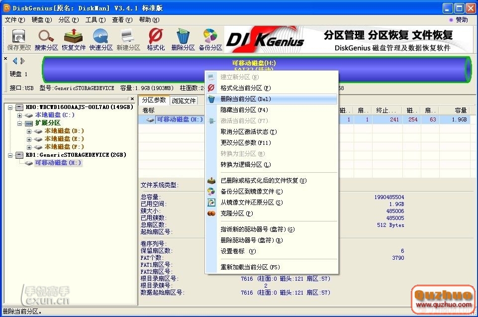 (外卡的話選擇Storage Card)。然後打開分區軟件DiskGenius。