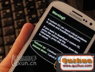 1、關閉手機,注:此處有兩種方式進入刷機模式:①按住音量上下鍵不放,同時插入手機數據線(一端插手機,一端插www.shuleba.com電腦USB接口)②同時按住音量下鍵