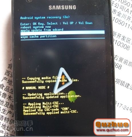 1、首先我們將下載來的ZIP格式卡刷包放入手機內存或者外置SD卡,然後手機進入Recovery模式(關機狀態下同時按住:音量上、HOME鍵、電源鍵,屏幕亮起後