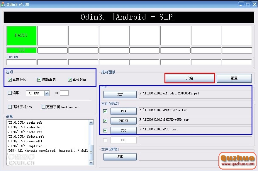 (1)運行刷機工具包中的Odin3 v1.30.exe