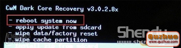 7、最後用音量上下鍵選取“reboot system now”重啟手機,就完成刷機了。