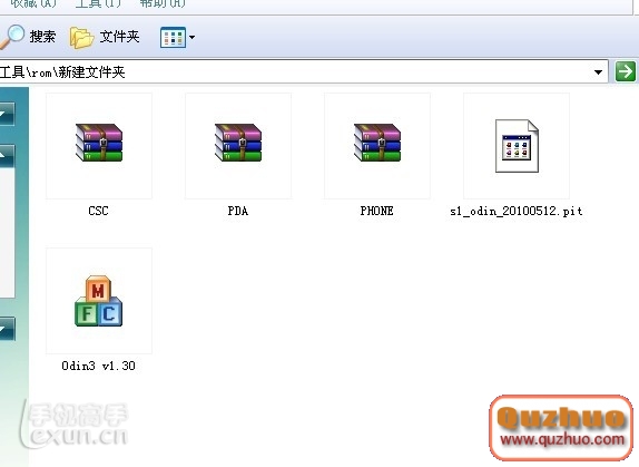 ROM中包含刷機需要用的PDA、MODEM、MULTI、PIT文件(如圖,有的包沒有PIT文件的話就不用);