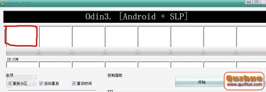 1、在www.shuleba.com電腦上打開Odin工具,勾上重新分區、自動重啟、重設時間;