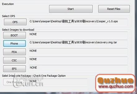 一款用於三星手機刷機的軟件。在手機關機的狀態下通過組合鍵(不同機型組合鍵不同)使手機進入刷機模式,然後用odin軟件選擇對應機型的ops文件,再選擇固件包(one pac