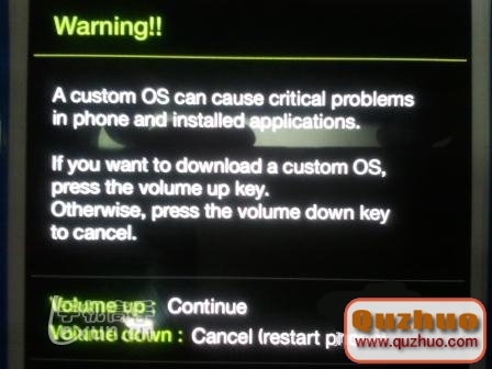 5、這時你看到一個警告,選擇continue,按一下音量上鍵