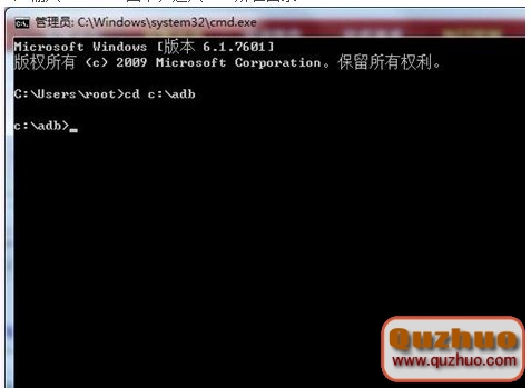 3、 輸入cd c:\adb回車,進入ADB所在目錄