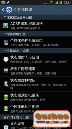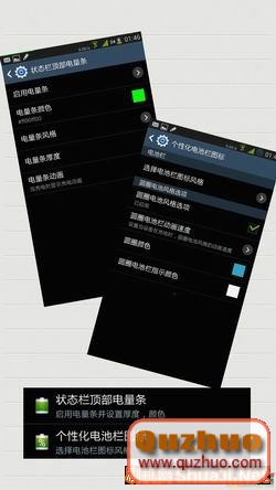 1:支持選擇不同的電池圖標(圈圈,官方,官方帶百分比,僅文字,HTC Sense,TouchWiz 4,CM,AOSP,隱藏)