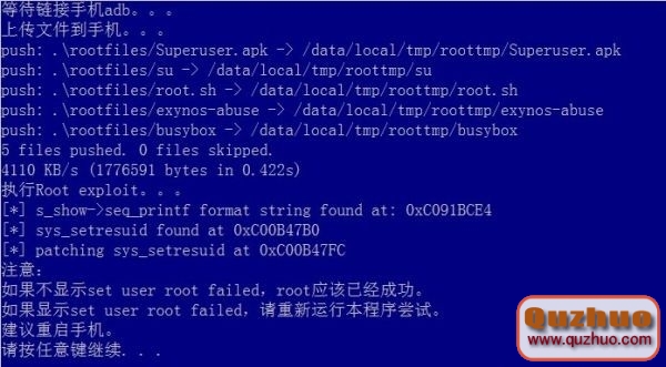 不成功請多試幾次,成功率很高的,就是往系統裡復制兩個文件不用擔心出問題。