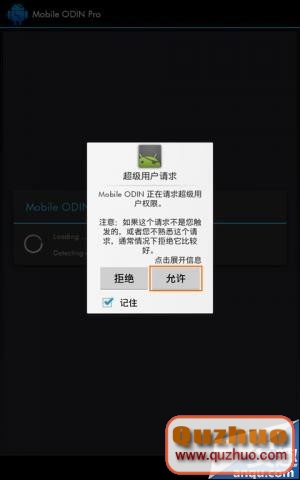 第二步,在手機上運行Mobile ODIN,超級用戶請求點允許。