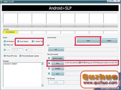 4、在刷機工具中找到PDA這一項,選擇之前解壓出來的PDA.tar刷機包,按照下圖的方法進行放置: