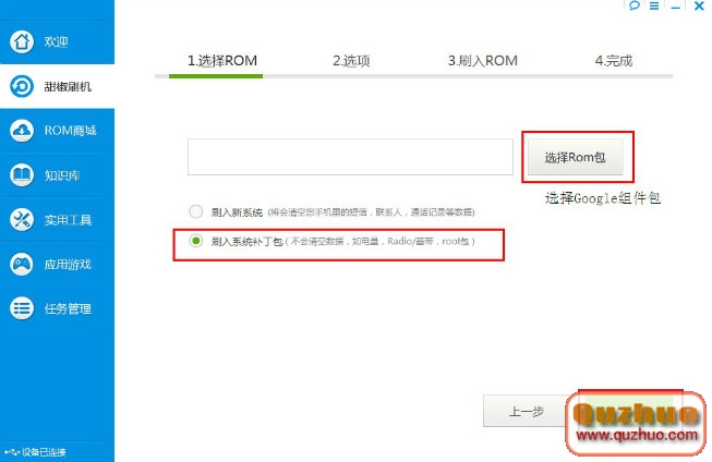 打開甜椒助手,一鍵刷機時,選擇“刷入系統升級包”;
