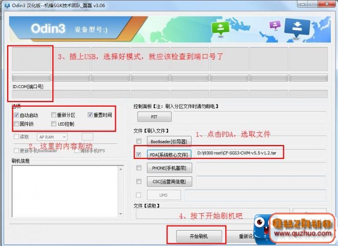 1、打開Odin3,此時你的手機先不要連接USB