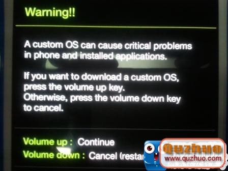 5、這時你看到一個警告,選擇continue,按一下音量上鍵