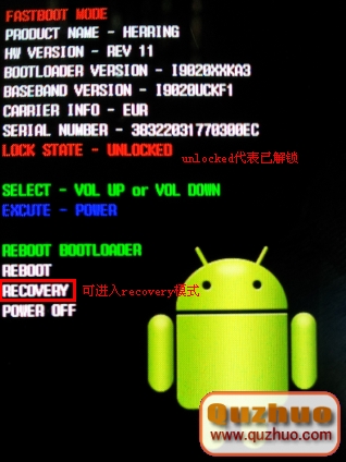 bootloader模式下,音量鍵選擇recovery,電源鍵確認進入recovery模式。