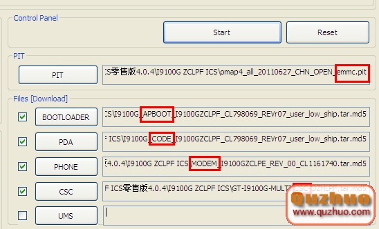 PIT選擇固件中pit格式文件(工具也只會顯示pit格式的文件讓你確認選擇);