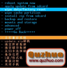 部分用戶手機未完全Root成功,或者未解鎖,會進入到如下模式(官方recovery)