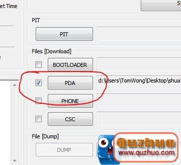 3、點PDA,然後找到下載的ROM,選擇它。其它任何都別管,不要再其它項目打鉤,也不要再取消已經選擇的項目。