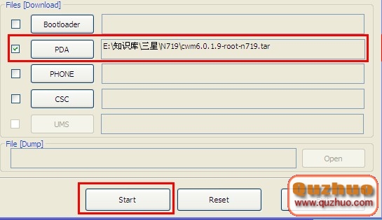 6.運行odin軟件,如圖選擇root文件,並點擊開始