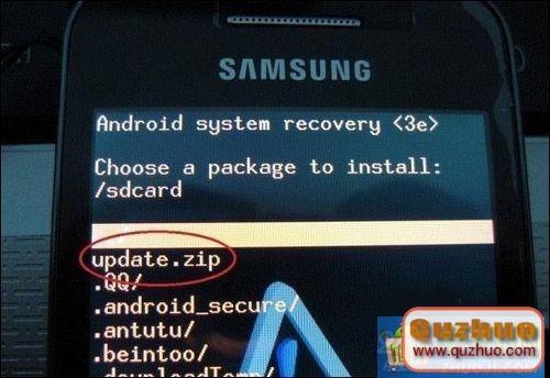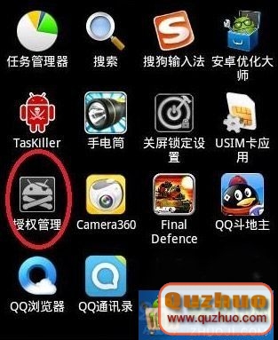 進入recovery模式之後,使用音量上下鍵進行選擇,按HOME鍵確認,選擇第二項(apply update from sdcard),home鍵確認,然後選擇你剛才放在SD卡根目錄下的update.zip文件,按HOME鍵確認,等待幾秒鐘之後手機會自動回到前面的界面,這時選擇第一個reboot system now(立即重啟),手機開機之後,查看自己的應用程序中是否有一個骷髅頭一樣的圖標(下圖有提示),這是三星s5830iroot權限獲取時自動安裝的一個“授權管理”的軟件,如果有則表明你的手機root成功。