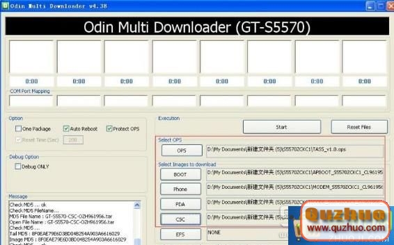 刷機首先還是要收集軟件,安卓刷機還挺簡單,唯一一個刷機軟件就是Odin Multi Downloader v4.38(最下端可供下載),刷機包我選用的是行貨的S5570ZCKC1的ROM,該ROM包含以下5個文件,一會介紹對應的選項.