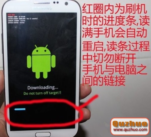 1、先將手機完全關機,進入刷機模式(關機狀態下同時按住 音量下、HOME、電源鍵)具體操作如圖: