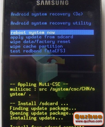 4、等待刷機完畢後recovery回到主界面,選擇reboot system now 重啟手機。第一次開機可能比較慢,請耐心等待。