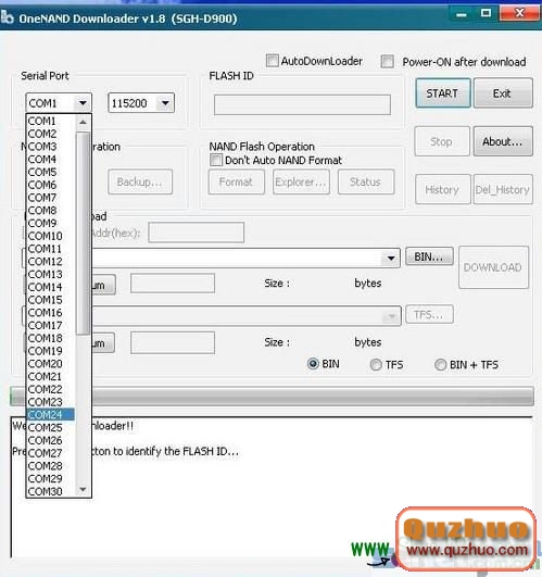 4、執行刷機軟件,並在端口處選擇我們剛看到的端口,即COM24。
