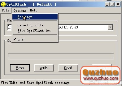 接下來打開OptiFlash軟件,並選擇“Options”下的“Settings”進行設置。