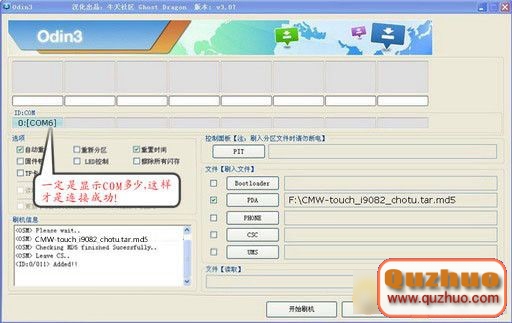 (6)用USB線連接www.shuleba.com電腦和手機,在www.shuleba.com電腦上運行Odin3-v3.07cn.exe,如圖: