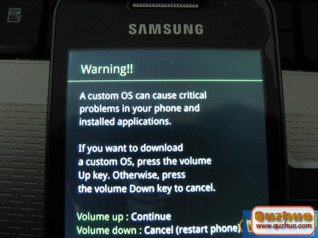 3、關機後,同時按音量+鍵、HOME鍵(功能鍵)、開機鍵,出現三星的logo之後,同時放開,這樣就進入了Recovery模式;