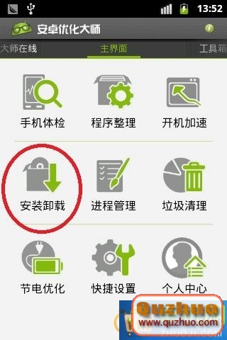 打開安卓優化大師,點擊安裝卸載,選擇系統減肥