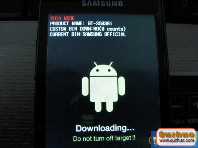手機關機,同時按音量+-鍵、開機鍵,出現三星的文字之後開放,進入線刷機模式: