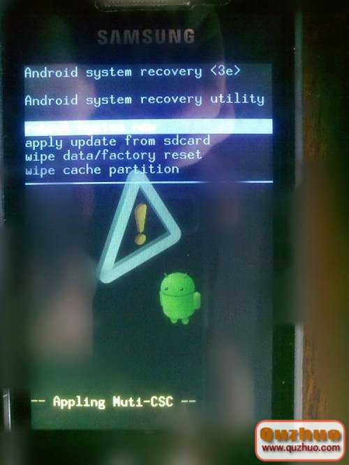 2、按住音量下+HOME+電源,直至進入Android system recovery <3e>模式松手