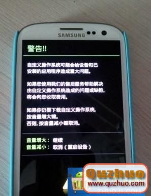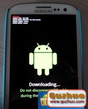 2、手機關機,按住【音量減小】和【Home(主屏)】鍵不放,再按【電源】鍵開機,進入download模式,看下圖