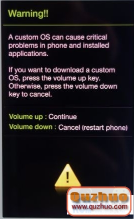 3、手機完成雙wipe後關機進入download模式。(如何進入download模式:關機後同時按住“音量—”和電源鍵 ,出現機器人和黃字後松開,按“音量+”即可)