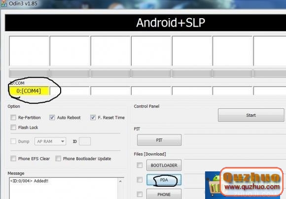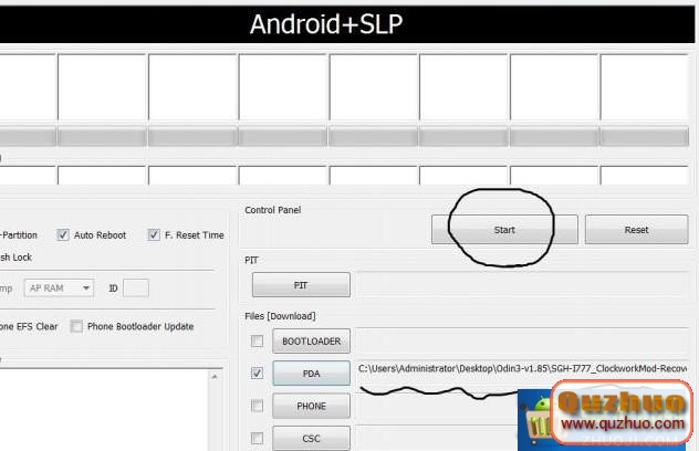 之後按start 圖中黑圈 就開始線刷了 刷好手機自動重啟就ok了 如何卡刷在這裡不多說 發現錯誤請重頭來