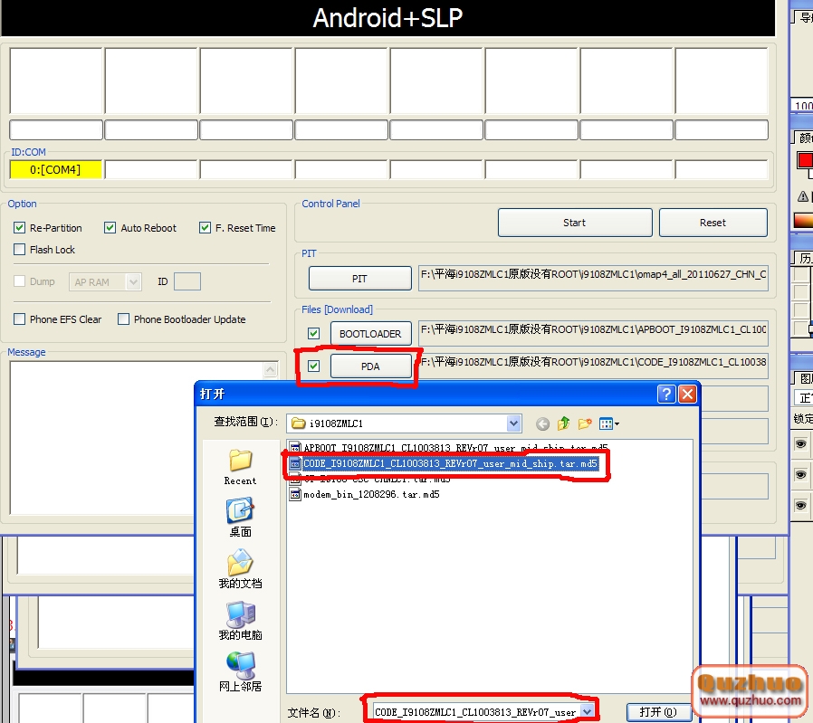 4.點擊“PDA” 選擇 CODE_I9108ZMLC1_CL1003813_REVr07_user_mid_ship.tar.md5文件