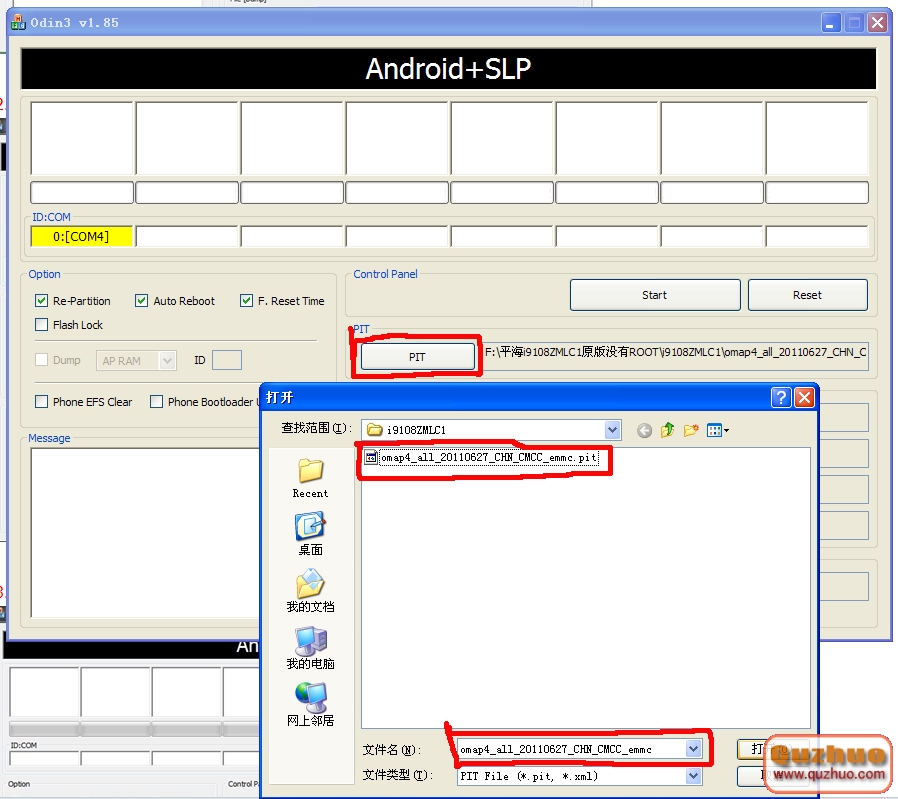 2.點擊“PIT”選擇 omap4_all_20110627_CHN_CMCC_emmc.pit 文件