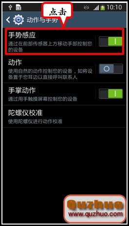 5.點擊【手勢感應】。