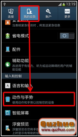 3.點擊【我的設備】,然後選擇【動作與手勢】。