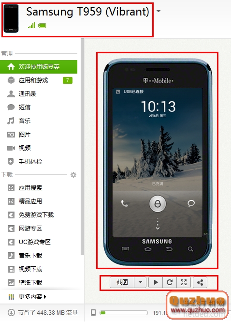 下面以三星t959手機為例子來說一下連接成功的標志: