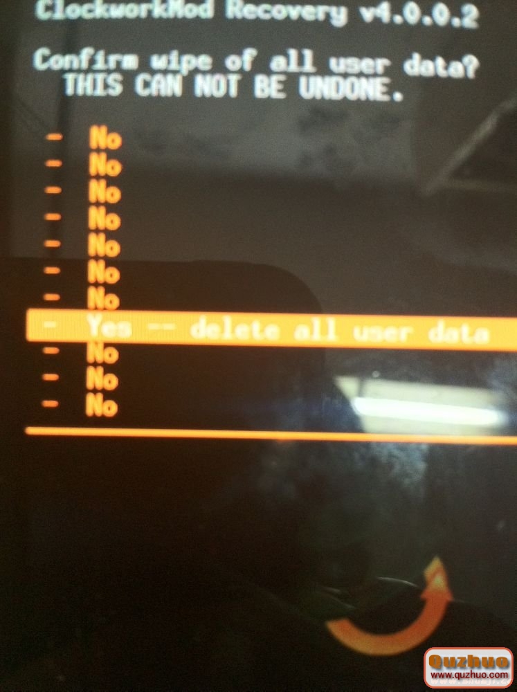 選擇wipe date/factory reset 確定後-選擇YES,如圖: