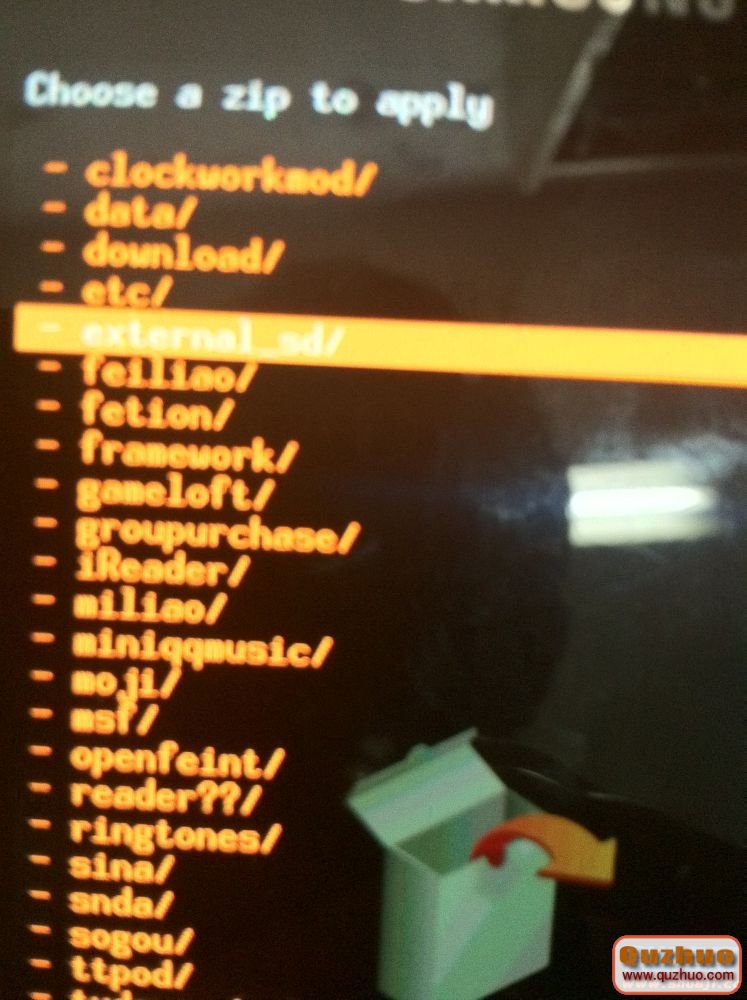 如果你把ROM包放在外置的SD卡得話,是在extenal-sd這個文件夾裡面哦。如圖: