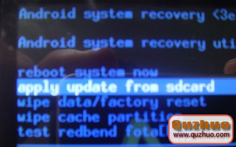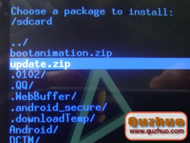 到SD卡的根目錄,同樣用音量鍵選到Update.zip,按HOME