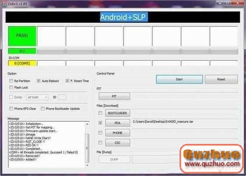 點擊“Start”按鈕,這時www.shuleba.com電腦會把XWKDD_insecure的壓縮包內的內核文件寫入手機,寫完後,手機會自動重啟(這時手機不需要拔掉數據線);